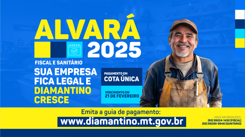 A Prefeitura de Diamantino, por meio do Decreto Municipal nº 075/2025, disponibilizou nesta segunda-feira (03/02), a prorrogação do prazo para a emissão do Alvará de