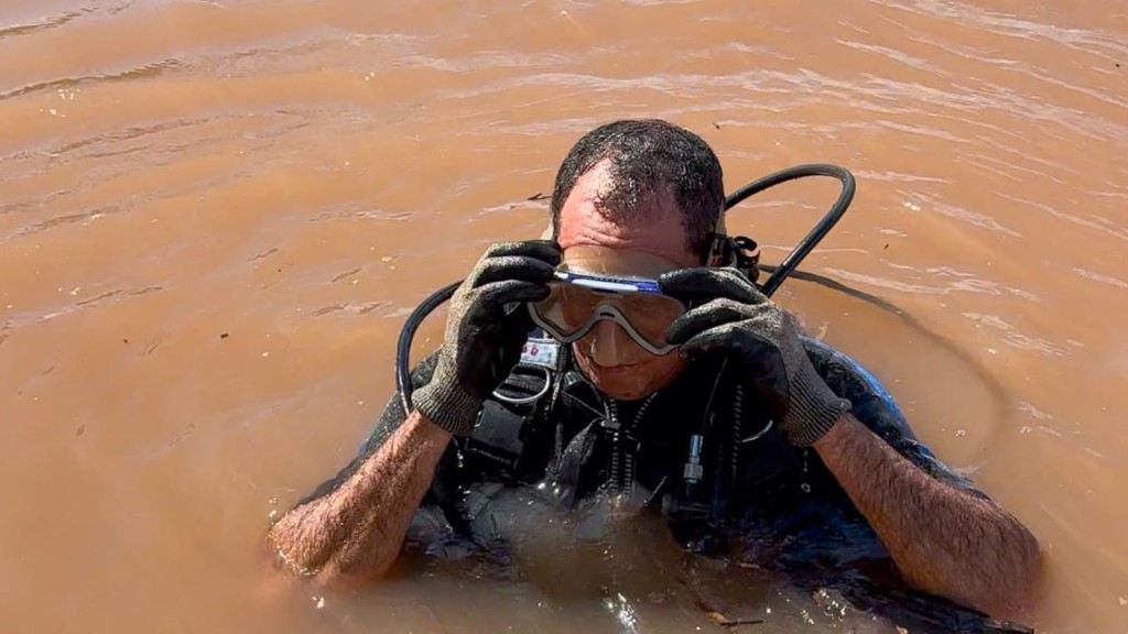 Equipe de mergulhadores removeu detritos, como garrafas plásticas, sacolas e madeira que se alojaram na estrutura da captação da ETA Imigrantes Em meio à mobilização