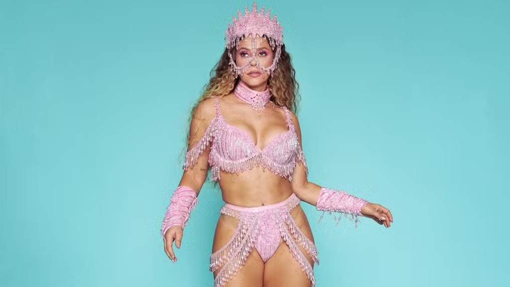 Paolla Oliveira, de 42 anos, exibiu o look do ensaio da Grande Rio na noite deste sábado (8), no Rio de Janeiro. Ela desfila como