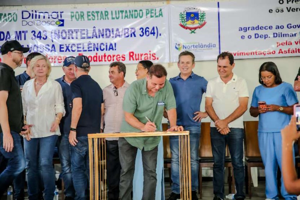 O deputado estadual Eduardo Botelho (União) participou, na última quinta-feira (12), da solenidade do governo de Mato Grosso que marcou o anúncio da duplicação da