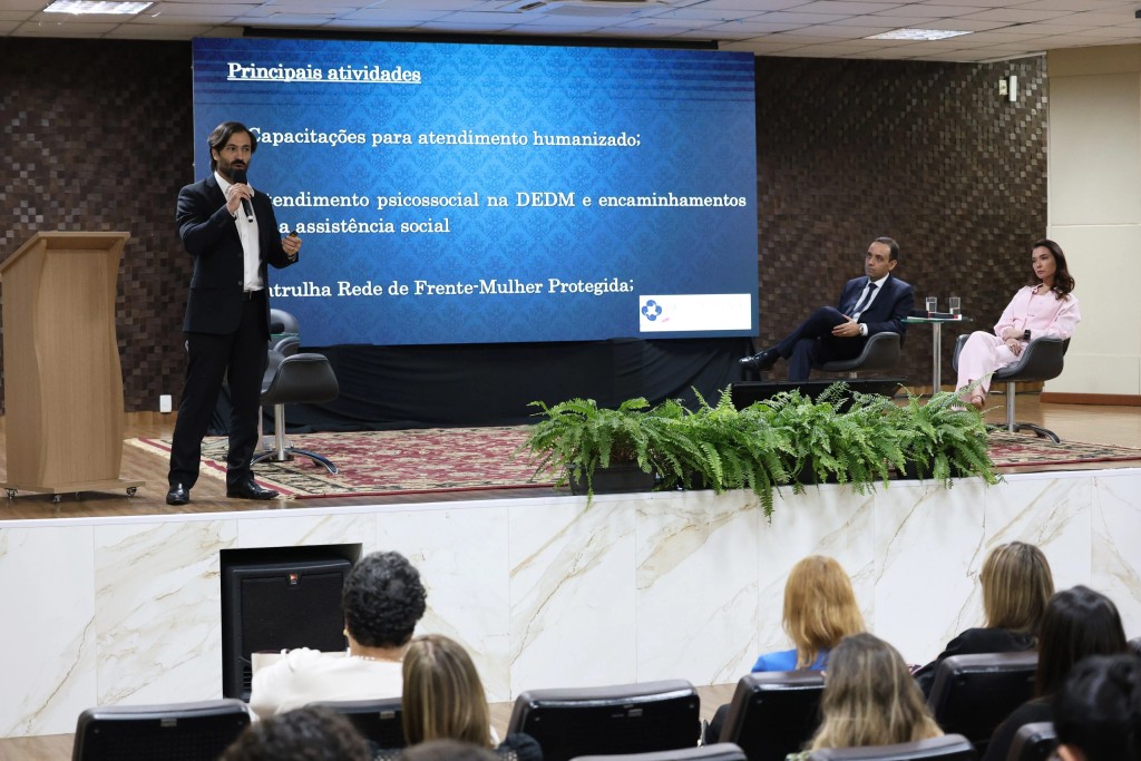 O juiz Gerardo Humberto Alves da Silva Júnior, auxiliar da Vice-Presidência do TJMT, trouxe uma reflexão sobre a naturalização da violência de gênero. “Ser mulher no Brasil significa estar em risco simplesmente por ser mulher. Grande parte dos crimes contra mulheres são crimes de ódio, praticados com extrema violência”, alertou.