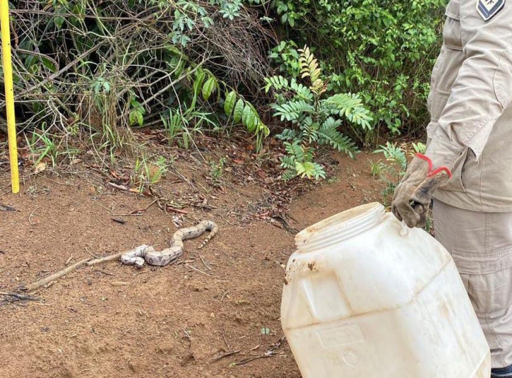 Após a captura, a jiboia foi transferida para uma caixa de transporte e, em seguida, solta em seu habitat natural.