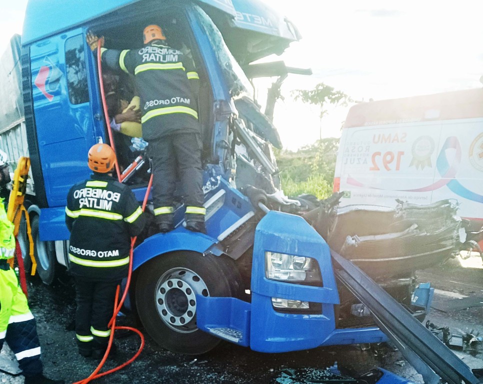 A equipe da 9ª Companhia Independente Bombeiro Militar (9ª CIBM) foi acionada por volta das 05h20, após solicitação da concessionária da rodovia. Informações iniciais indicavam que uma carreta, com dois passageiros, havia colidido na traseira de outra carreta. O acidente resultou em duas vítimas feridas, todas do mesmo veículo.