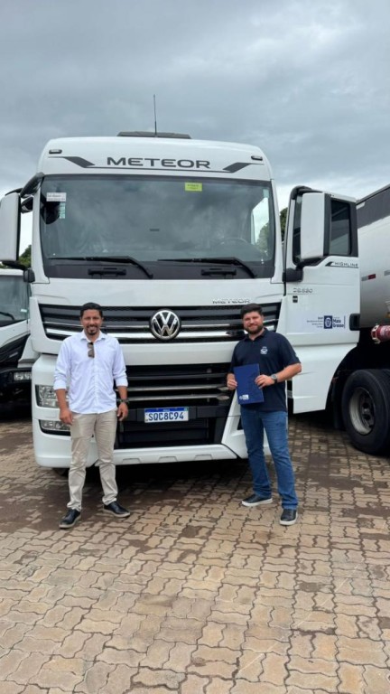 O presidente da Câmara de Sorriso, Rodrigo Matterazzi, e o e secretário municipal de Agricultura Familiar e Segurança Alimentar, Lucas de Oliveira, receberam o maquinário