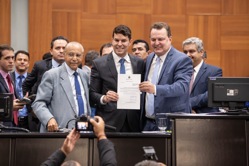 O presidente da Câmara de Sorriso, Rodrigo Matterazzi, e o e secretário municipal de Agricultura Familiar e Segurança Alimentar, Lucas de Oliveira, receberam o maquinário