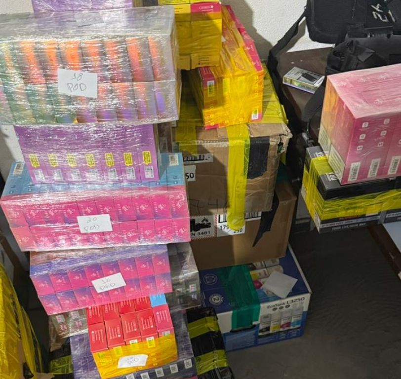 Os policiais se deslocaram até o endereço indicado da loja e encontraram mais 5.715 quantidades de cigarros eletrônicos, 2.637 essências dos produtos que são proibidos de venda no Brasil, além de 48 carteiras de cigarros com origem estrangeira, além de resistências, planilhas com anotações e notebooks.