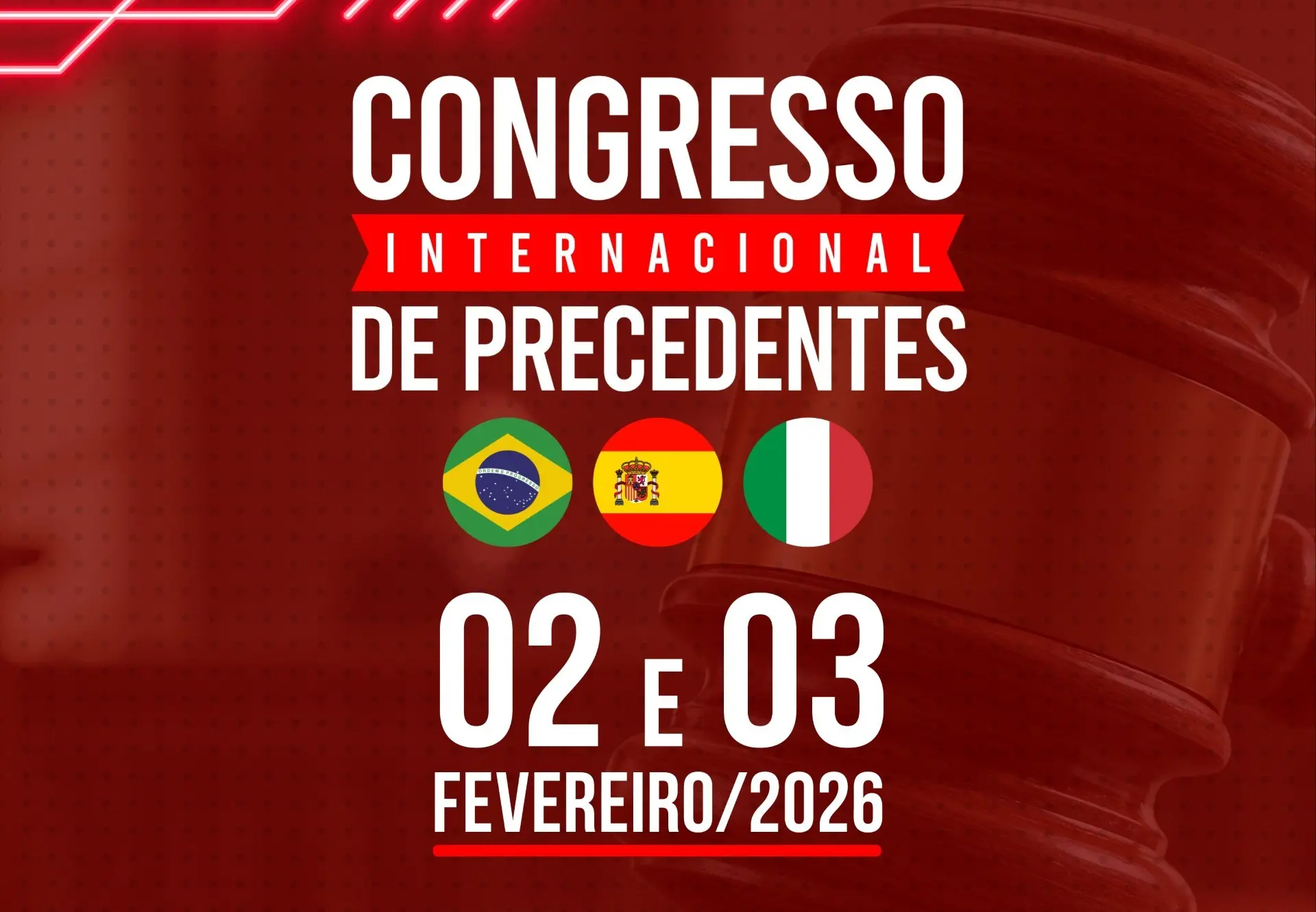 Nos dias 2 e 3 de fevereiro de 2026, o Poder Judiciário de Mato Grosso, por meio da Escola Superior da Magistratura Desembargador João Antônio Neto (Esmagis-MT), realizará o Congresso Internacional de Precedentes, evento de destaque no calendário jurídico nacional e internacional. No dia 2, a programação será ofertada das 13h às 18h. Já no dia 3, as atividades ocorrem das 8h às 12h e das 14h às 18h.