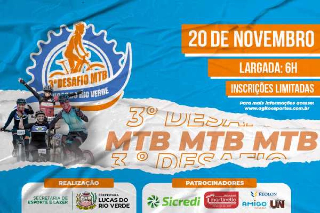 Inscrições podem ser feitas de forma on-line no seguinte endereço eletrônico: https://www.agitoesportes.com.br/eventos/3-desafio-mtb-lucas-do-rio-verde-terceira-etapa