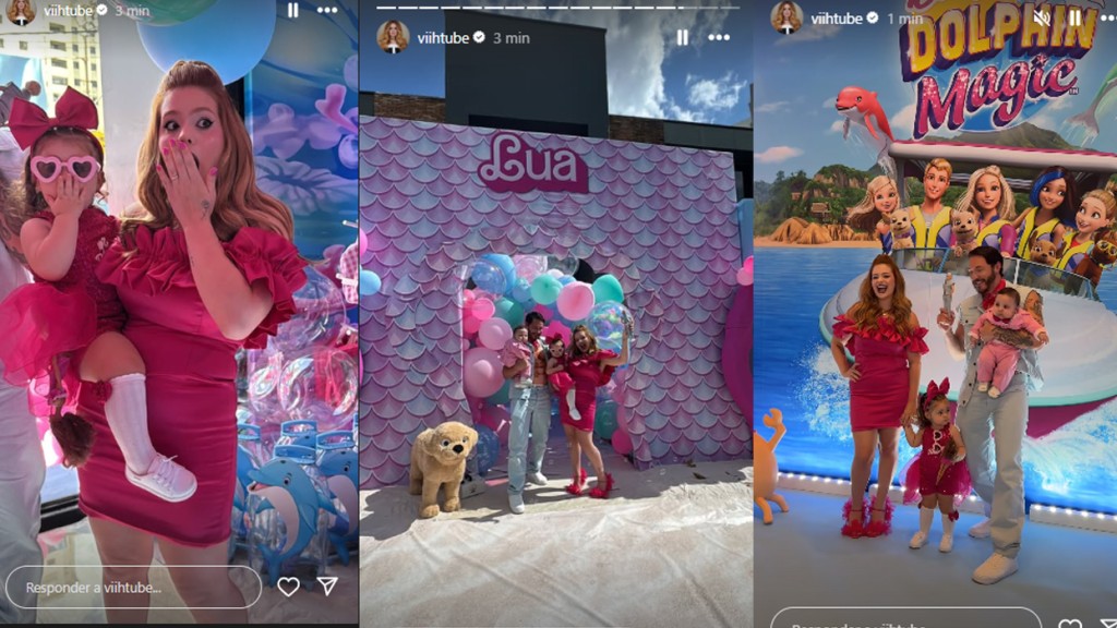 O tema escolhido para o aniversário da pequena foi Barbie. O look todo rosa usado por Lua, foi composto por um body, uma saia de tule e um laço na cabeça. E para deixar o look ainda mais fashionista, a filha de Viih Tube e Eliezer colocou um óculos de sol em formato de coração. Confira: