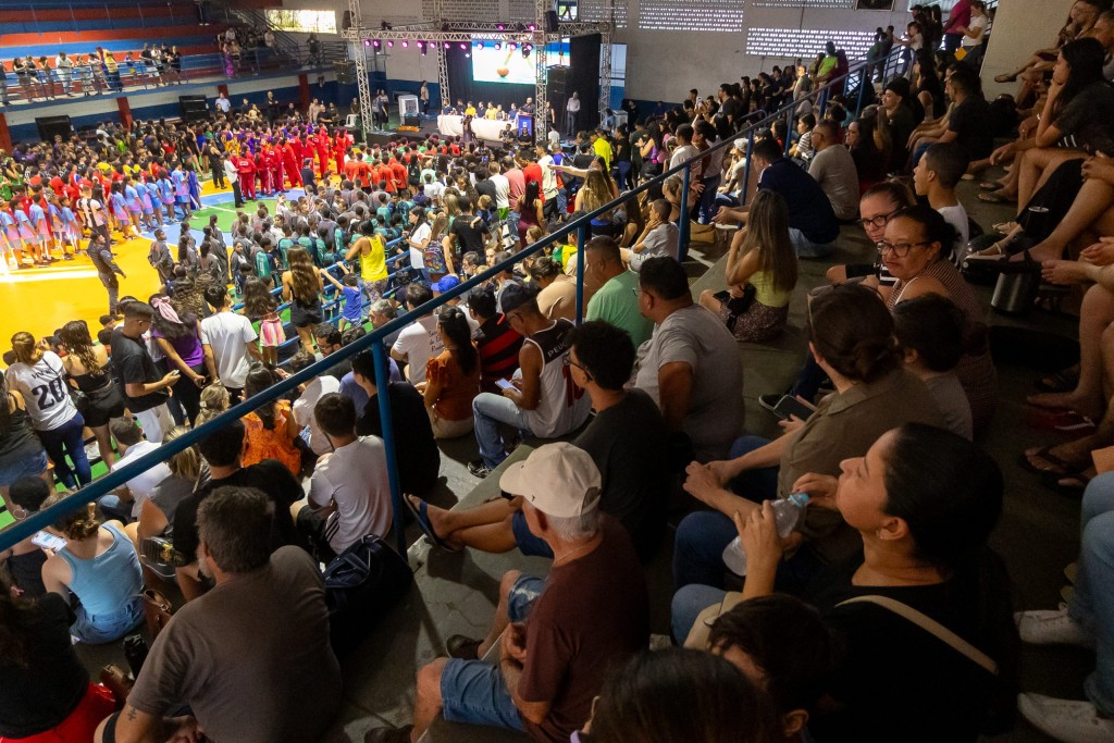 O Ginásio de Esportes Marechal Rondon voltou a ser palco das disputas dos Jogos Escolares de Rondonópolis. O evento da abertura oficial aconteceu neste fim de semana com a presença de diversas delegações de escolas das redes pública e privada do município, familiares dos atletas e também autoridades locais.