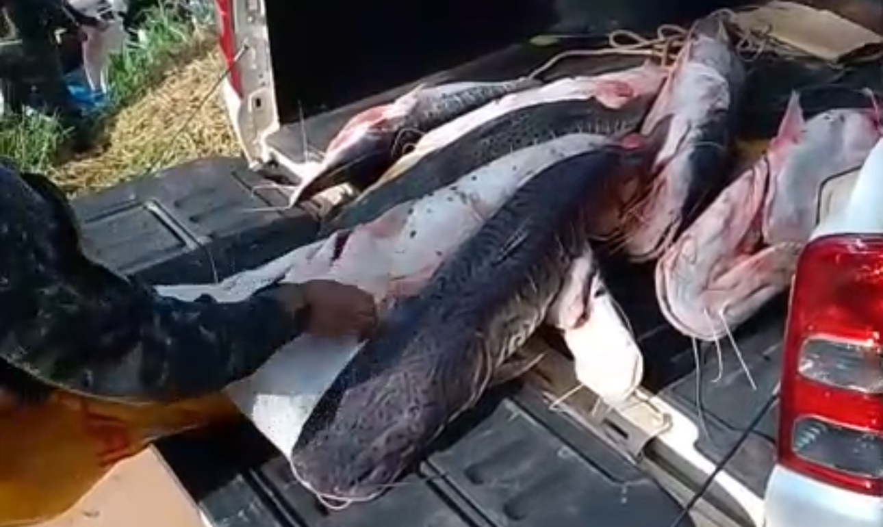 Pescadores são flagrados com mais de 1 tonelada de pescado ilegal no Rio Vermelho, em Rondonópolis