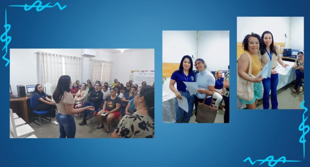 #PraTodosVerem: A imagem mostra uma montagem com três fotos de um evento. Na primeira, uma mulher fala para um grupo de pessoas sentadas em uma sala, em clima de atenção e diálogo. Nas outras duas, servidoras entregam documentos a participantes, que sorriem ao receber. O fundo azul e os elementos gráficos indicam tratar-se de uma ação institucional, voltada à entrega de certidões e à valorização da cidadania.