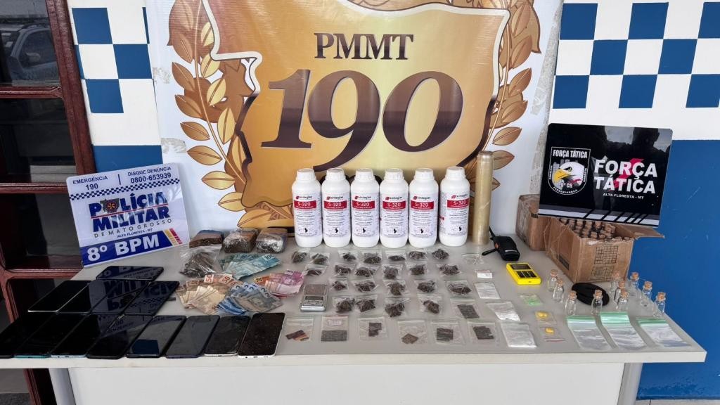 No local, os policiais recuperaram alguns dos objetos levados da loja e apreenderam entorpecentes. Os suspeitos foram encaminhados à delegacia para registro do boletim de ocorrência.