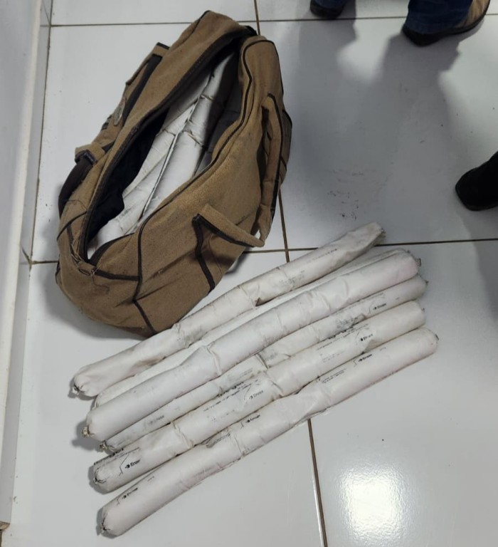 Durante a abordagem, os policiais identificaram forte odor de produtos químicos e localizaram uma bolsa contendo 14 emulsões de artefatos explosivos e também materiais que poderiam ser utilizados para a aplicação das bombas.