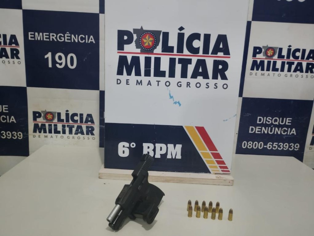 Policiais militares do 6º Comando Regional prenderam um homem, de 36 anos, por porte ilegal de arma de fogo, na noite desta terça-feira (3.6), em Cáceres. O suspeito foi detido em flagrante pela PM com uma pistola de calibre .9mm carregada com 11 munições.