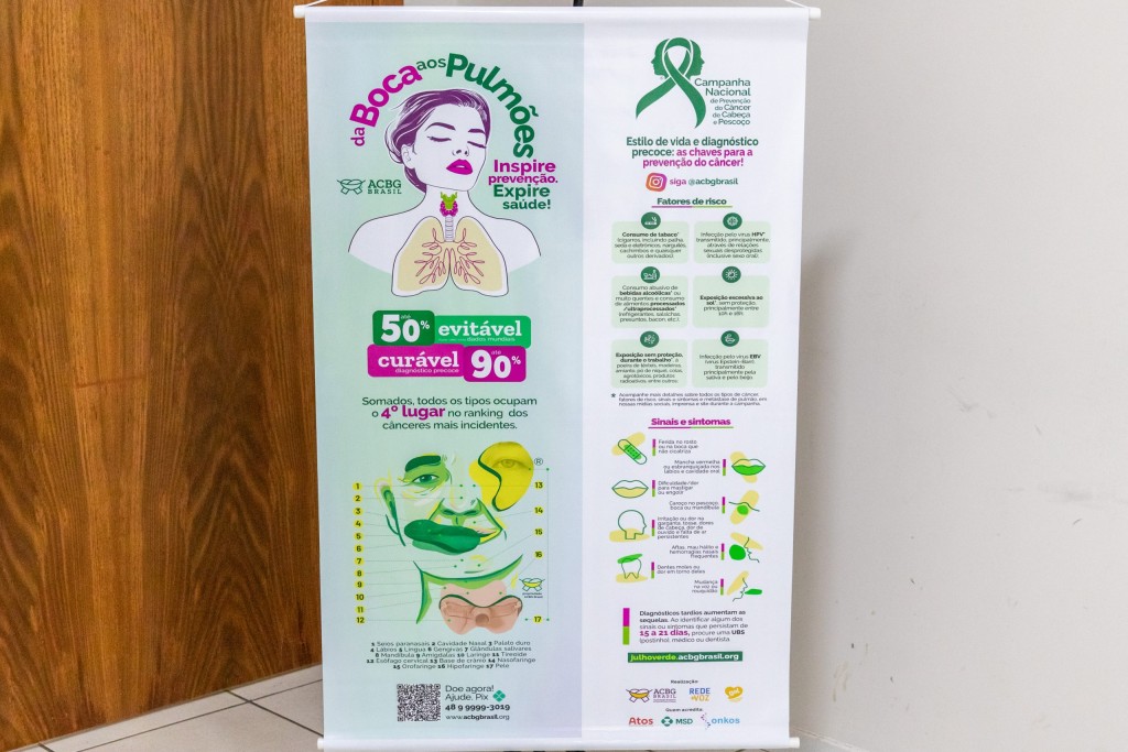 A campanha, iniciada no dia 2 de julho, integra uma mobilização de alcance mundial e tem como foco alertar a população sobre os sinais e sintomas dos cânceres que acometem áreas como boca, garganta, laringe, faringe, tireoide, glândulas salivares e região nasal.