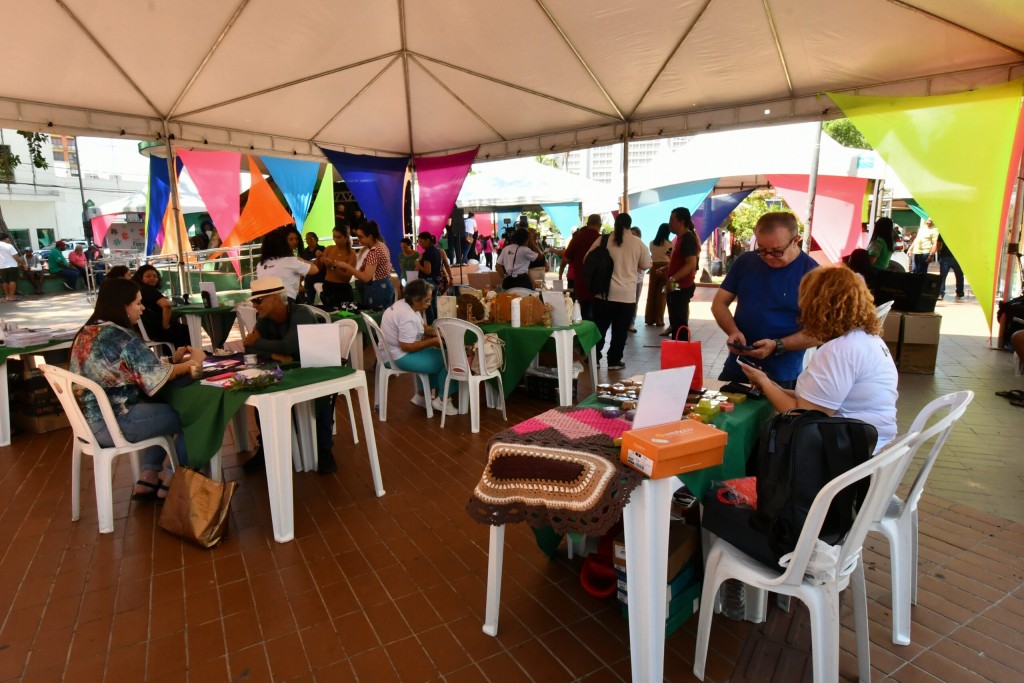 O evento, que conta com tendas climatizadas e espaços personalizados para 47 (quarenta e sete) expositores de diferentes secretarias, oferece uma variedade de opções gastronômicas, como doces, tortas e quitutes, além de produtos artesanais, incluindo acessórios, pedras decorativas, bordados, enfeites e vinhos.