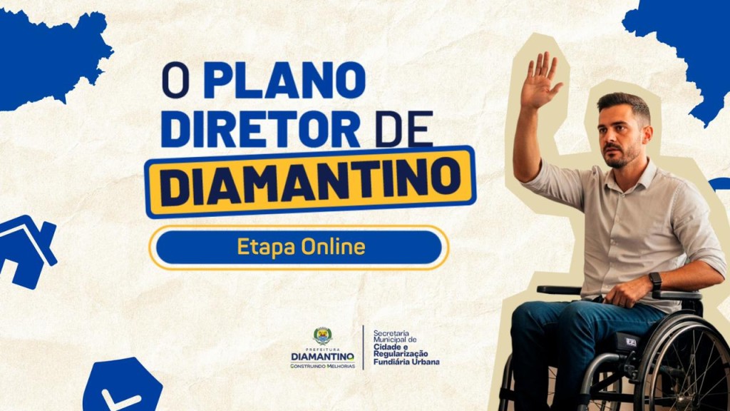 A Prefeitura de Diamantino ampliou nesta segunda (17.11) as oportunidades de diálogo com a população e abriu a etapa online de contribuições para o Plano Diretor, instrumento que vai orientar o crescimento urbano, o uso dos espaços e o desenvolvimento sustentável do município pelos próximos 10 anos. Os interessados devem deixar suas sugestões por meio do questionário disponível no link https://forms.gle/zgnnoKeq1bobNBJv7