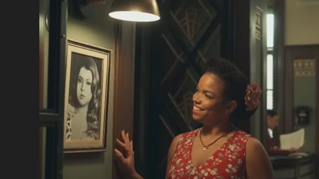 Na cena, Dita (Jeniffer Nascimento) está na Rádio Paraíso, onde trabalha, e passa por um corredor onde ficam expostos retratos de cantoras de rádio da época, se dirige à imagem de Preta Gil e demonstra sua admiração.