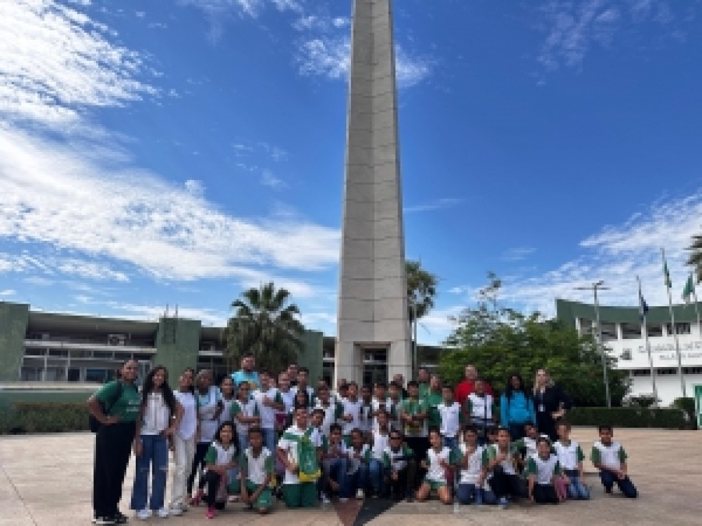 A Câmara Municipal de Cuiabá recebeu nesta quinta-feira (24.10), cerca de 40 alunos do 5º ano, da EMEB Clóvis Huguiney, do bairro Altos do Parque 1, para mais uma edição do Projeto Cuiabaninhos. A realização é da Escola do Legislativo.