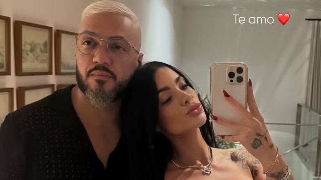 O cantor Belo, de 50 anos, e a namorada, Rayane Figliuzzi, de 27 anos, posaram juntos pela primeira vez em foto divulgada pela influenciadora, na noite dessa quarta-feira (16). “Te amo”, escreveu Rayane, que ainda exibiu momentos românticos do casal em um hotel, com direito a decoração no quarto, espumante e piscina privativa.