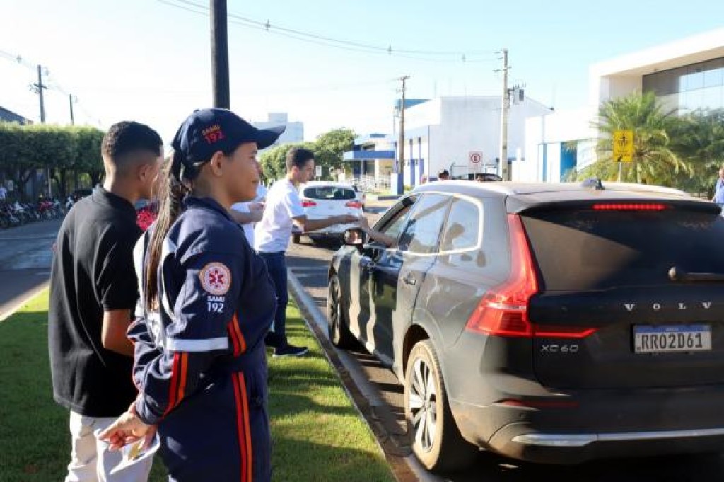 Nada é mais importante do que salvar uma vida. A Secretaria de Saúde, por meio da equipe do Serviço de Atendimento Móvel (Samu), juntamente com a Guarda Municipal de Trânsito (GMT), realizou na manhã desta quinta-feira (15), uma abordagem educativa, em frente ao AME, voltada à conscientização para um trânsito mais seguro. O movimento, em alusão ao Maio Amarelo, traz a reflexão: desacelere, o seu bem mais precioso é a vida, slogan utilizado na campanha nacional de segurança no trânsito.
