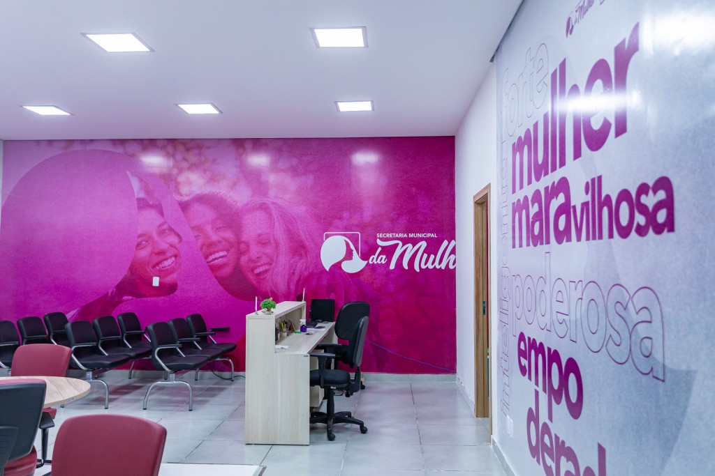 A foto mostra a entrada da Secretaria da Mulher.