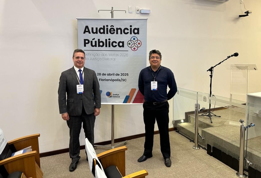 O juiz auxiliar da presidência do Tribunal Regional Eleitoral de Mato Grosso (TRE-MT), Aristeu Dias Batista Vilella, e o assessor de Planejamento e Gestão Estratégica, André Luiz Régis Emidio, participam, nesta segunda-feira (28.04), da audiência pública para definição das Metas 2026 da Justiça Eleitoral. O evento é sediado pelo TRE de Santa Catarina e ocorre em Florianópolis (SC), durante toda a tarde.