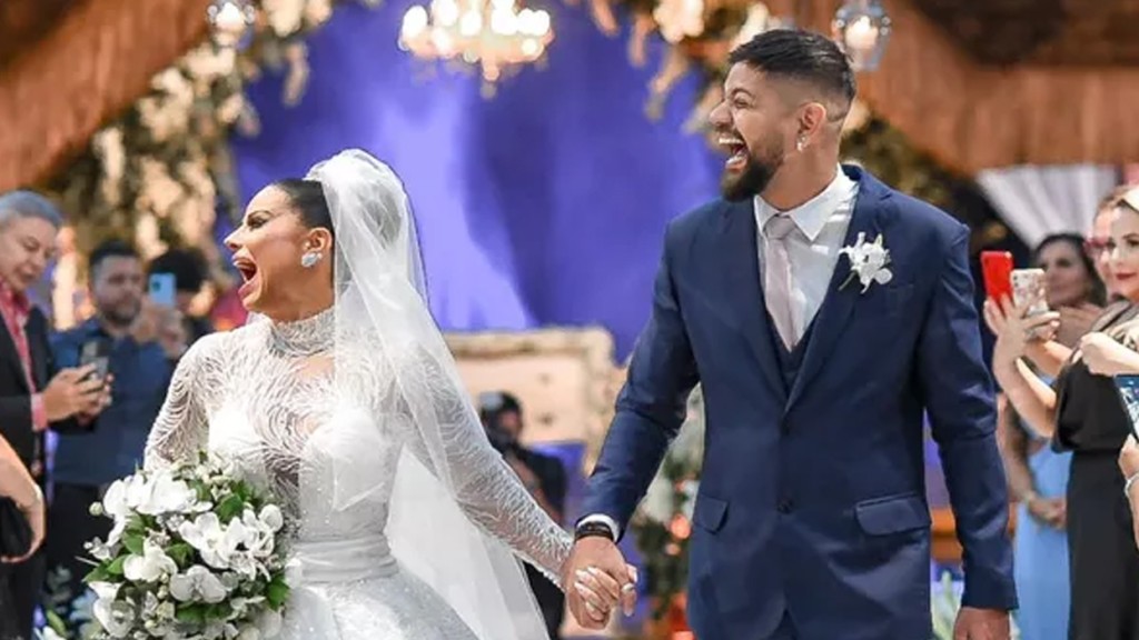 Na publicação, ela mostra o momento em que entra na igreja vestida de noiva, mostra também, a emoção do marido ao vela vestida de noiva.